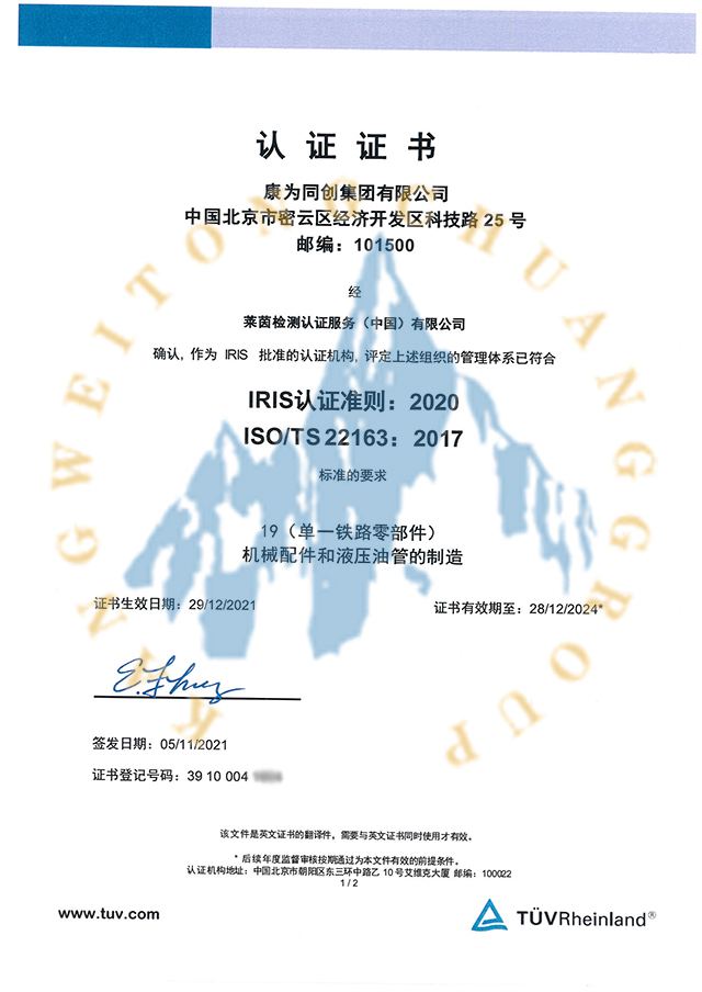 康为同创集团有限公司作为制造企业的一员,致力于为铁路、城建等国民经济建设提供核心零部件的生产与服务。在国家宏观产业政策的指导下,确定了并正在实施一整套新的发展战略,以期正确地把握自己的前进方向,不至于随人短长,陷入迷津,目标就是比肩并超越国际同行业先进水平,努力建成主业突出、核心竞争力强的现代化装备制造企业。